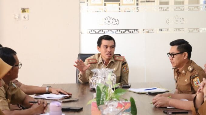 Penjabat (Pj.) Sekretaris Daerah Kabupaten, Dr. Arie Anthony Thamrin, S.STP., M.IP., CGCAE., CGRE memimpin Rapat Persiapan Penilaian Opini Penyelenggaraan Standar Pelayanan Publik Tahun 2025 di Ruang Buway Pemuka Pengiran Ilir, Selasa (06/05/2025).