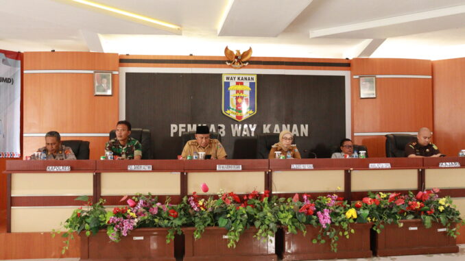 Way Kanan | Laba-labanews.com – Pelaksana Tugas (Plt.) Bupati Ayu Asalasiyah, S.Ked memimpin Musyawarah Rencana Pembangunan (Musrenbang) Rencana Pembangunan Jangka Menengah Daerah (RPJMD) Kabupaten Way Kanan Tahun 2025-2029 di Ruang Buway Pemuka Pengiran Tuha, Selasa (06/05/2025). Yang dihadiri oleh Gubernur Lampung diwakili Staf Ahli Gubernur, Badan Perencanaan Pembangunan Daerah Provinsi Lampung, Anggota Forkopimda dan Penjabat (Pj) Sekretaris Daerah Kabupaten, Dr. Arie Anthony Thamrin, S.STP., M.IP., CGCAE., CGRE dan Ketua Dharma Wanita Persatuan, Medias Imroni Arie Anthony.