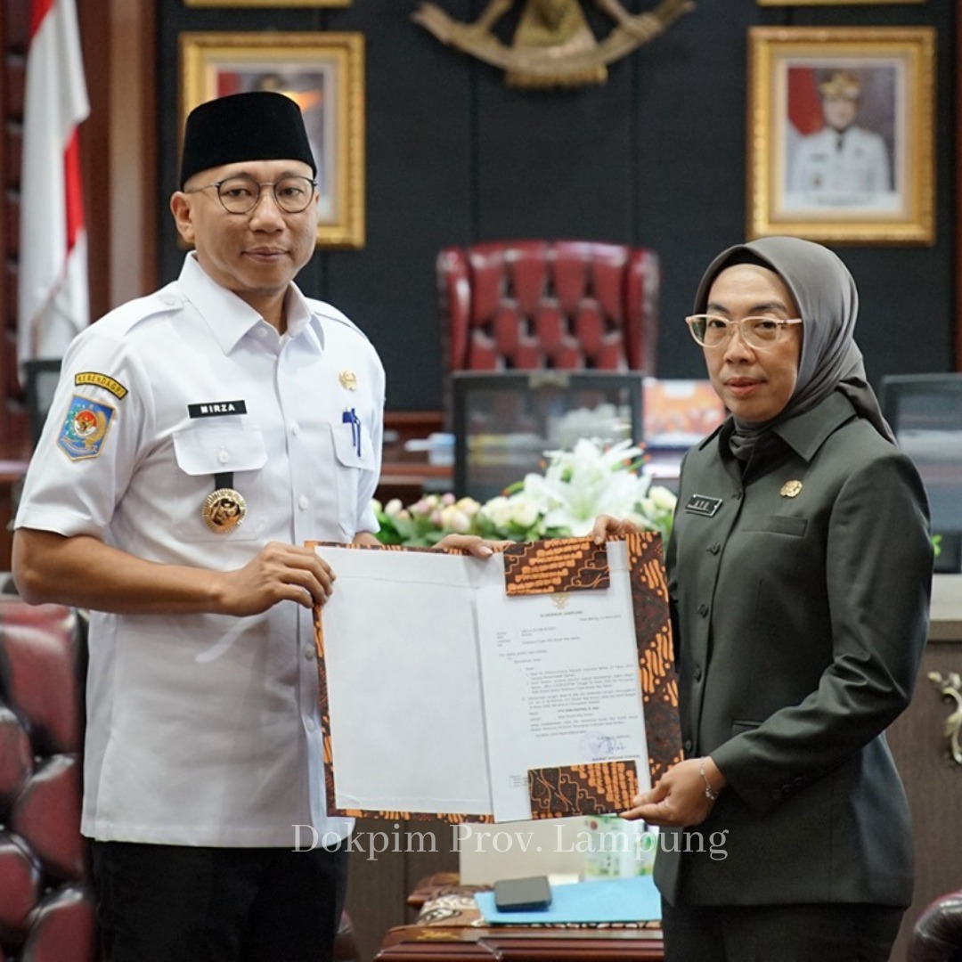 Bandar Lampung – Wakil Bupati Way Kanan, Ayu Asalasiyah, S.Ked bersama Ketua DPRD Way Kanan, Rial Kalbadi, S.H, Asisten Bidang Pemerintahan dan Kesra, Sekretaris DPRD serta Kepala Bagian Hukum Setdakab menghadiri Acara Penyerahan Surat Pelaksana Tugas (Plt) Bupati Way Kanan di Ruang Kerja Gubernur Lampung, pada Rabu (12/03/2025).